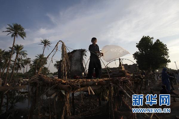 8月18日,在巴基斯坦信德省蘇庫爾,一名兒童在路邊一處棚屋頂上避災(zāi)時玩一個塑料袋。聯(lián)合國警告說,巴基斯坦洪災(zāi)區(qū)可能會有大約350萬兒童面臨通過被污染的水或昆蟲感染疾病的危險。7月下旬以來,巴基斯坦部分地區(qū)遭遇特大洪澇災(zāi)害。巴基斯坦政府官員8月16日表示,洪災(zāi)已造成1600多人喪生,2000多萬人受災(zāi),部分洪澇災(zāi)區(qū)已暴發(fā)疫情。新華社/路透