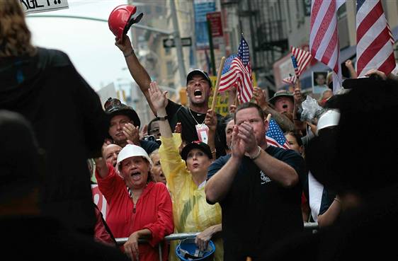 報(bào)道稱(chēng),警方設(shè)立路障以分隔支持和反對(duì)這一清真寺項(xiàng)目的集會(huì)民眾。示威者在距離紐約世貿(mào)中心遺址數(shù)百米的地方舉著標(biāo)語(yǔ)并高喊口號(hào)。