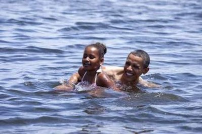 奧巴馬與女兒在墨西哥灣游泳