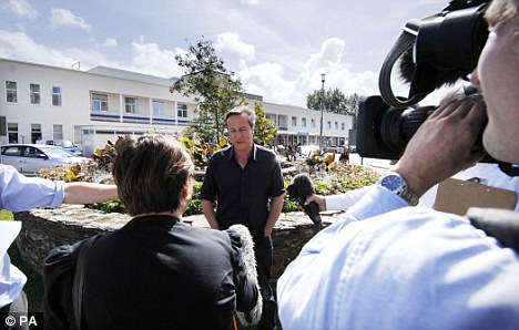 卡梅倫在醫(yī)院外向記者報(bào)喜
