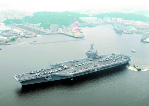 日本橫須賀美軍基地,前為“華盛頓”號航空母艦。
