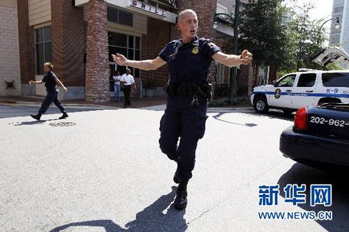 警察在美國馬里蘭州銀泉市的探索頻道總部外疏散人群。
