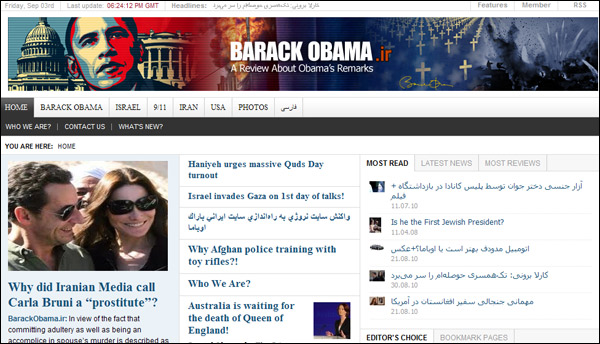 據(jù)英國《衛(wèi)報(bào)》9月2日消息,伊朗一個(gè)支持總統(tǒng)內(nèi)賈德的記者團(tuán)體,近日專門為美國總統(tǒng)奧巴馬創(chuàng)建了一個(gè)網(wǎng)站,主要是站在伊朗的立場(chǎng)上分析奧巴馬的各種觀點(diǎn)。網(wǎng)站亮相第一周便贏得了近10萬的點(diǎn)擊。