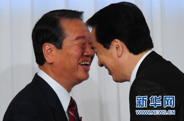 9月1日,在日本首都東京舉行的聯合記者會開始前,日本首相、執(zhí)政的民主黨代表(黨首)菅直人(右)和民主黨前干事長小澤一郎抵達會場。新華社記者季春鵬攝