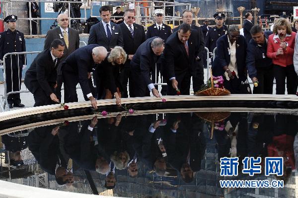 美國紐約市11日上午在世貿(mào)中心“零地帶”舉行“9·11”恐怖襲擊事件9周年紀念儀式,悼念在9年前的恐怖襲擊中的遇難者。