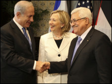 當天,以色列總理內(nèi)塔尼亞胡和巴勒斯坦民族權力機構主席阿巴斯在埃及度假勝地沙姆沙伊赫舉行直接談判,美國國務卿希拉里和米切爾出席。