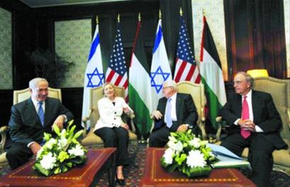 本月2日,內(nèi)塔尼亞胡和阿巴斯在美國(guó)的斡旋下,在美國(guó)首都華盛頓重啟了中斷20個(gè)月之久的直接談判。除了表達(dá)力爭(zhēng)一年內(nèi)完成最終地位談判、達(dá)成和平協(xié)議的愿景外,雙方首輪談判沒有取得任何實(shí)質(zhì)性進(jìn)展。