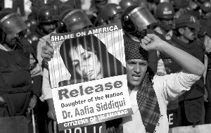 美國(guó)一家聯(lián)邦法院今年2月認(rèn)定西迪基奪槍射擊罪名成立,在巴基斯坦引發(fā)爭(zhēng)議。一些巴基斯坦人認(rèn)為,西迪基無(wú)辜清白,在阿富汗和美國(guó)關(guān)押期間受到虐待。