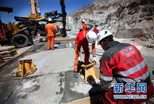 10月12日,在智利圣何塞銅礦,救援人員為救援工作進(jìn)行最后的準(zhǔn)備。智利圣何塞銅礦被困礦工救援工作于當(dāng)?shù)貢r間12日下午正式開始。新華社發(fā)(智利政府提供)