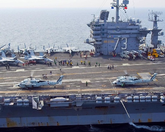 7月27日,韓美軍演繼續(xù)進行,從韓國“獨島”號運輸艦起飛的SH-60S“海鷹”直升機降落在美軍“華盛頓”號航母上。來源:美國海軍網(wǎng)站