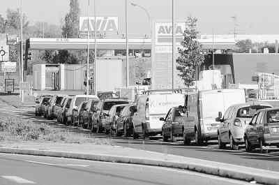 日前在法國的全國性罷工導致部分加油站鬧“油荒”。在法國南特,一家加油站外等待加油的汽車排起長龍。新華社發(fā)