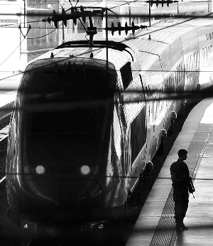 9月20日,法國巴黎,法國安全部隊在巴黎火車北站的站臺上巡邏。