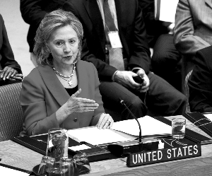 10月26日,希拉里在聯(lián)合國安理會會議上講話。