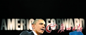奧巴馬在投票前還在拉票,他身后的標(biāo)語是“推動(dòng)美國向前進(jìn)”。