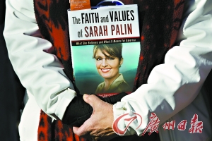 共和黨的支持者拿著佩林的著作。
