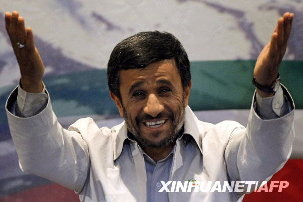 這是2009年6月14日艾哈邁迪-內(nèi)賈德在伊朗首都德黑蘭出席記者會(huì)的資料照片。 新華社/法新