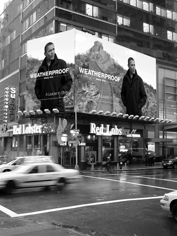 今年1月,紐約街頭出現(xiàn)印有奧巴馬形象的巨幅廣告招貼畫。
