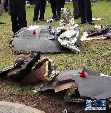 11月4日,在與新加坡隔海相望的印度尼西亞巴淡島,印尼警察查看從不同地區(qū)搜集到的澳洲航空公司客機(jī)墜落殘片。當(dāng)日,一架澳航客機(jī)飛越印尼上空時(shí)引擎發(fā)生問題,飛行員被迫關(guān)閉引擎并在新加坡樟宜機(jī)場緊急迫降,所幸機(jī)上無人員傷亡。 新華社/路透