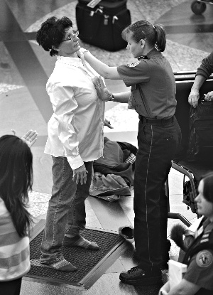 10月底,英國(guó)與迪拜當(dāng)局雙雙截獲寄往美國(guó)的郵包炸彈后,美國(guó)運(yùn)輸安全管理局再度提高全美機(jī)場(chǎng)的安檢級(jí)別。如果掃描顯示乘客有異狀或乘客拒絕接受掃描,將由同性安檢人員執(zhí)行嚴(yán)格的人工搜身,包括觸碰隱私部位。此舉再度引發(fā)強(qiáng)烈爭(zhēng)議。因乳腺癌戴上義乳的慕莎·麥耶致信媒體“責(zé)問”:“全美有300萬(wàn)名婦女患有乳腺癌,其中很多人有佩戴義乳。難道要求我們所有人登機(jī)時(shí)都要接受這一屈辱、費(fèi)時(shí)的(搜身安檢)程序嗎?”