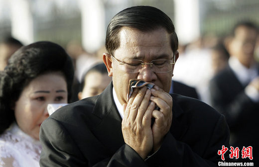 25日是柬埔寨為“11.22”金邊鉆石橋踩踏罹難者舉行全國哀悼日悼念儀式,當(dāng)天上午在事發(fā)地鉆石橋頭舉行。柬埔寨首相洪森及夫人、官方及各社會團(tuán)體、僧侶、普通民眾共數(shù)千人參加悼念儀式。儀式中,洪森不禁落淚。