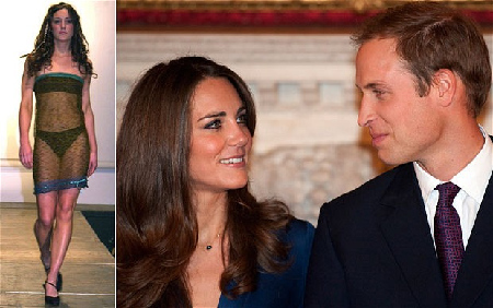 凱特2002年走秀時穿的透視裝有望飆升至10萬英鎊,右圖為凱特與威廉日前公開宣布已訂婚時的情景。(資料圖片)