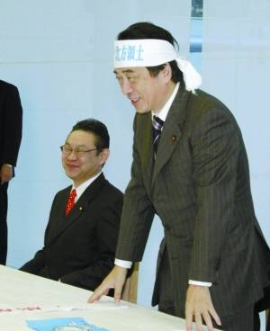 在和長谷川市長交談前,菅直人頭上系了一條寫有“歸還北方四島”的頭巾,表達對此事的強硬態(tài)度。