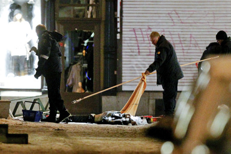 11日,瑞典首都斯德哥爾摩的法醫(yī)檢查一名疑似襲擊者的遺體。