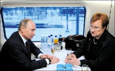 俄羅斯與芬蘭之間首條高速鐵路12日正式開(kāi)通,俄羅斯總理弗拉基米爾·普京和芬蘭總統(tǒng)塔里婭·哈洛寧共同乘坐首班列車(chē)。普京在下車(chē)后開(kāi)玩笑說(shuō),由于車(chē)速過(guò)快,他和哈洛寧都沒(méi)有足夠時(shí)間交談。這條鐵路是連接俄羅斯和歐洲其他國(guó)家的首條高鐵。