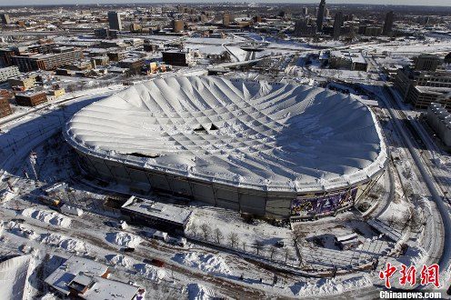 美國明尼蘇達(dá)州維京人隊體育場的圓型屋頂因大雪坍塌