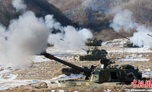12月20日,韓國(guó)軍方開(kāi)始在延坪島舉行海上實(shí)彈射擊訓(xùn)練。資料圖為韓國(guó)K9火炮。