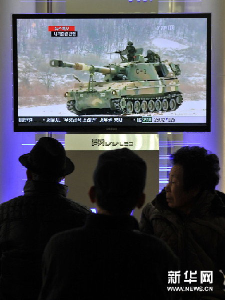 12月20日,民眾在韓國(guó)首都首爾火車站觀看有關(guān)實(shí)彈射擊訓(xùn)練的新聞。韓國(guó)軍隊(duì)當(dāng)?shù)貢r(shí)間20日下午在延坪島舉行實(shí)彈射擊訓(xùn)練。新華社/法新