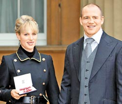 英國橄欖球星廷道爾(Mike Tindall)2007年11月28日榮獲英國女王伊莉莎白二世頒贈“MBE勛章”后,與女友——女王孫女莎拉-菲利浦斯(Zara Phillips)合照。英國白金漢宮21日宣布莎拉與廷道爾訂婚的消息。