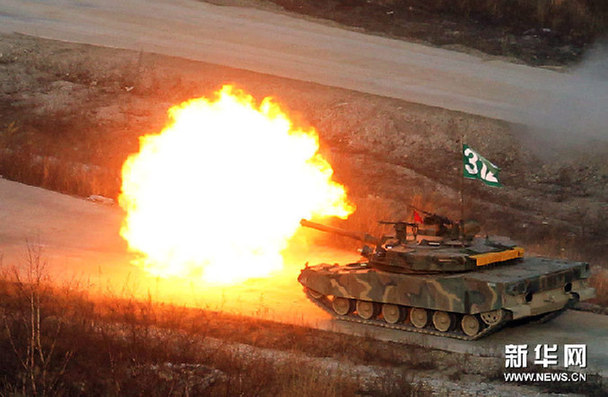 12月23日,在韓國(guó)抱川,K-1坦克在演習(xí)中。當(dāng)日,韓國(guó)陸軍和空軍在京畿道抱川市軍用射擊場(chǎng)舉行了“最大規(guī)模的聯(lián)合火力演習(xí)”。新華社/聯(lián)合通訊社
