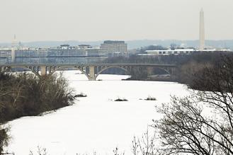 美國首都華盛頓的波多馬克河25日不但結(jié)冰,冰上還覆蓋白雪。