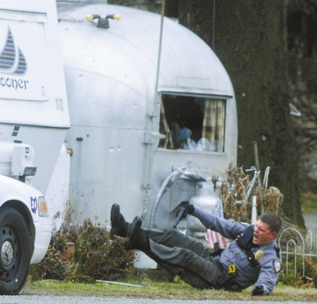 警員布盧姆被擊中后受傷倒地