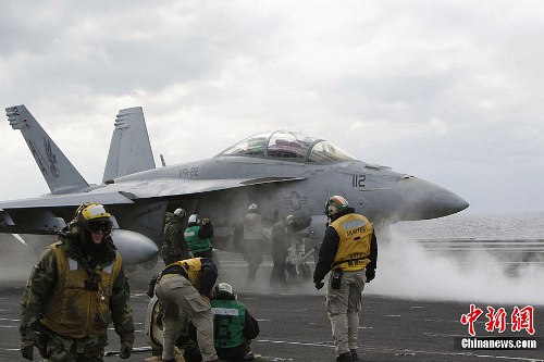 此次向媒體公開的信息顯示,在“卡爾·文森”號甲板上,F(xiàn)A-18戰(zhàn)斗機(jī)與EA-6B電子作戰(zhàn)飛機(jī)以1分鐘的間隔反復(fù)演練艦上起降。美第一航母戰(zhàn)斗群司令佩雷斯強(qiáng)調(diào),此次演習(xí)“是展現(xiàn)日美在太平洋地區(qū)穩(wěn)固同盟關(guān)系的有力信號!