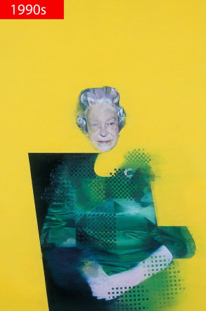 1998年的畫像最為特別,女王的頭部是懸在其身體上的;
