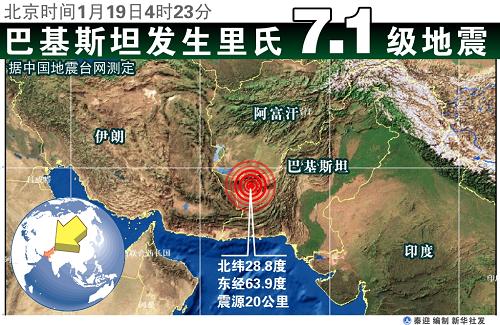 震中位于巴基斯坦西南部俾路支省的哈蘭地區(qū)。地震波及巴基斯坦西南部、南部,中部和東部大部分地區(qū)。