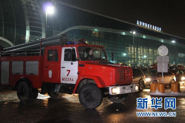 1月24日,救援車輛在俄羅斯莫斯科多莫杰多沃機(jī)場外駛過。當(dāng)日,莫斯科多莫杰多沃機(jī)場發(fā)生爆炸事件,目前死亡人數(shù)已上升到35人。新華社記者魏大方攝