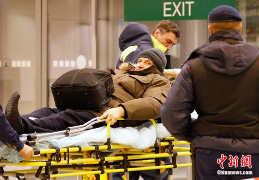 當(dāng)?shù)貢r(shí)間2011年1月24日16時(shí)32分(北京時(shí)間1月24日21時(shí)32分),俄羅斯莫斯科多莫杰多沃機(jī)場(chǎng)抵達(dá)大廳內(nèi)發(fā)生自殺式炸彈爆炸。造成35人死亡,180人受傷。圖為傷者被送往醫(yī)院救治。