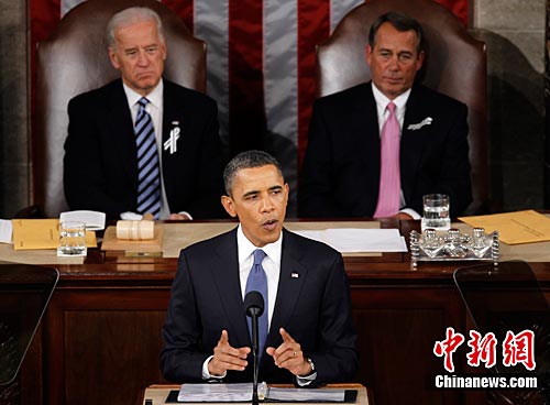 1月25日,美國(guó)華盛頓,美國(guó)總統(tǒng)奧巴馬在國(guó)會(huì)發(fā)表2011年國(guó)情咨文。