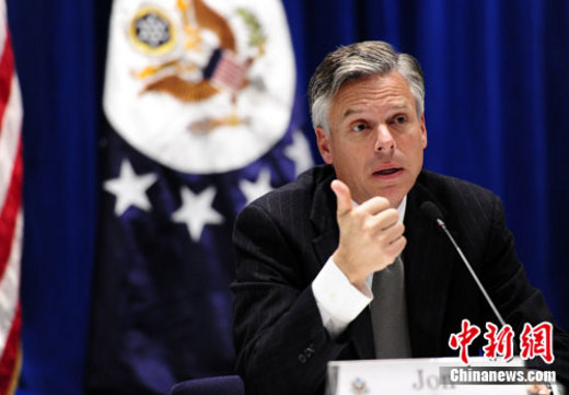 1月12日下午,在中國(guó)國(guó)家主席胡錦濤即將訪問美國(guó)之前,美國(guó)駐華大使洪博培在大使館舉辦一場(chǎng)媒體見面會(huì)。洪博培表示,美中兩國(guó)目前關(guān)系良好。中新社記者 侯宇 攝
