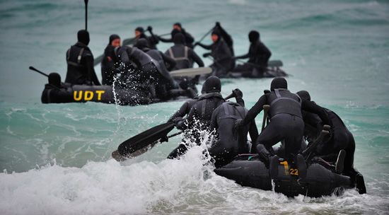 資料圖:韓國(guó)海軍陸戰(zhàn)隊(duì)蛙人部隊(duì)作戰(zhàn)演練