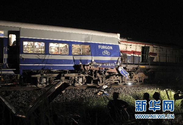 這是2011年2月17日在阿根廷布宜諾斯艾利斯省圣米格爾市附近拍攝的火車相撞現(xiàn)場。 新華社/路透