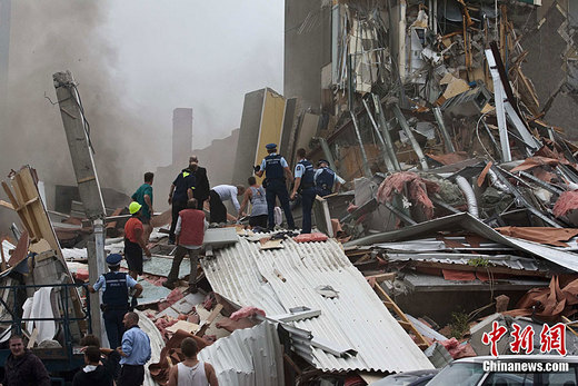 另一名生還者休伊森表示,地震發(fā)生時,他與兩名同事在辦公室內(nèi)吃午餐。當時,一大塊混凝土厚板正往他們?nèi)说姆较虻瓜,所幸混凝土板倒下的角度有偏差,他們才完好無損。