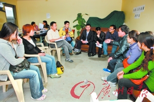 2月28日,部分家屬與使館工作人員在交流。本報(bào)特約記者 王世瑞 攝