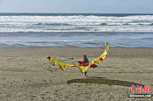 當?shù)貢r間3月11日下午,美國舊金山日落區(qū)太平洋岸邊,一位勇敢的沖浪者帶著他的風帆步向海浪。當天上午8時,日本強震引發(fā)的海嘯抵達舊金山海岸,未造成災難性損害,居民生活如常。中新社發(fā) 陳鋼 攝