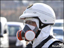 日本官員正在指揮核電站周?chē)用癯冯x