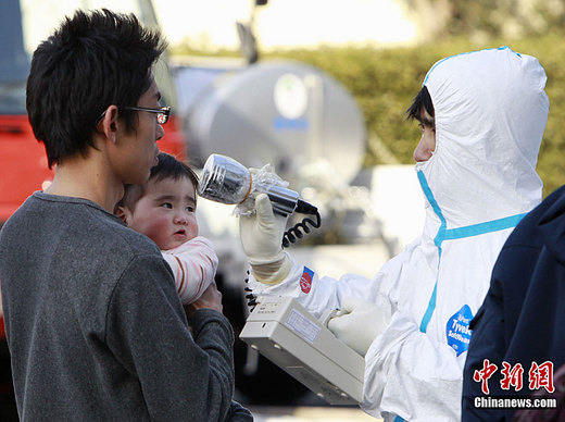日本核泄漏危機(jī)13日傳出進(jìn)一步擴(kuò)大的消息。日本原子能安全保安院13日稱,福島第一核電站目前面臨新的問(wèn)題,該電站第三反應(yīng)堆緊急冷卻系統(tǒng)失靈,可能發(fā)生爆炸,急需采取冷卻措施。圖為日本福島縣郡山民眾接受輻射水平檢測(cè)。