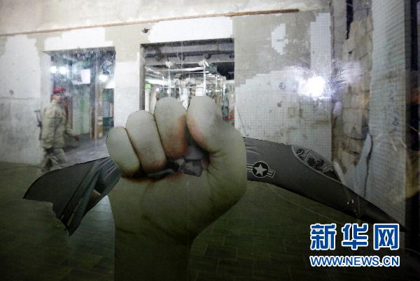 3月19日,在利比亞首都的黎波里,一名士兵走過(guò)一只手捏碎一架F-16飛機(jī)的宣傳圖片。據(jù)利比亞電視臺(tái)20日?qǐng)?bào)道,截至目前已有約48人在空襲中死亡,另有150人受傷。 新華社/路透